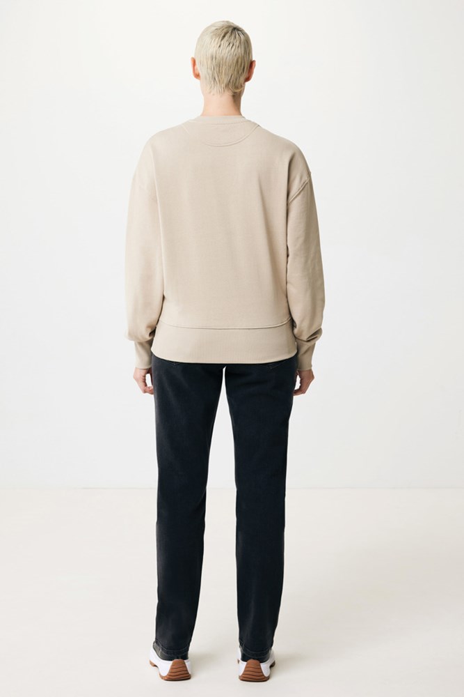Unisex relaxed fit crewneck trui gemaakt van 100% katoen, waarvan 50% gerecycled en 50% biologisch, in 340 G/M². De trui heeft een relaxte pasvorm met verlaagde schoudernaden, een ronde hals, wijdere lange mouwen en 2x2 rib. De zachte, gebrushte binnenkant zorgt voor extra draagcomfort. Het gebruik van echte gerecyclede en biologische stoffen en claims over de impact op het milieu zijn gevalideerd door het gebruik van de AWARE™ fysieke tracer en blockchain-technologie. Door de QR-code te scannen, krijgt u toegang tot een uniek digitaal paspoort van het product. 2% van de opbrengst van elk verkocht product wordt gedoneerd aan Water.org. Dit product is OEKO-TEX® STANDARD 100 gecertificeerd. Door het gerecycled materiaal kunnen eventueel kleine oneffenheden of lichte kleurverschillen ontstaan.