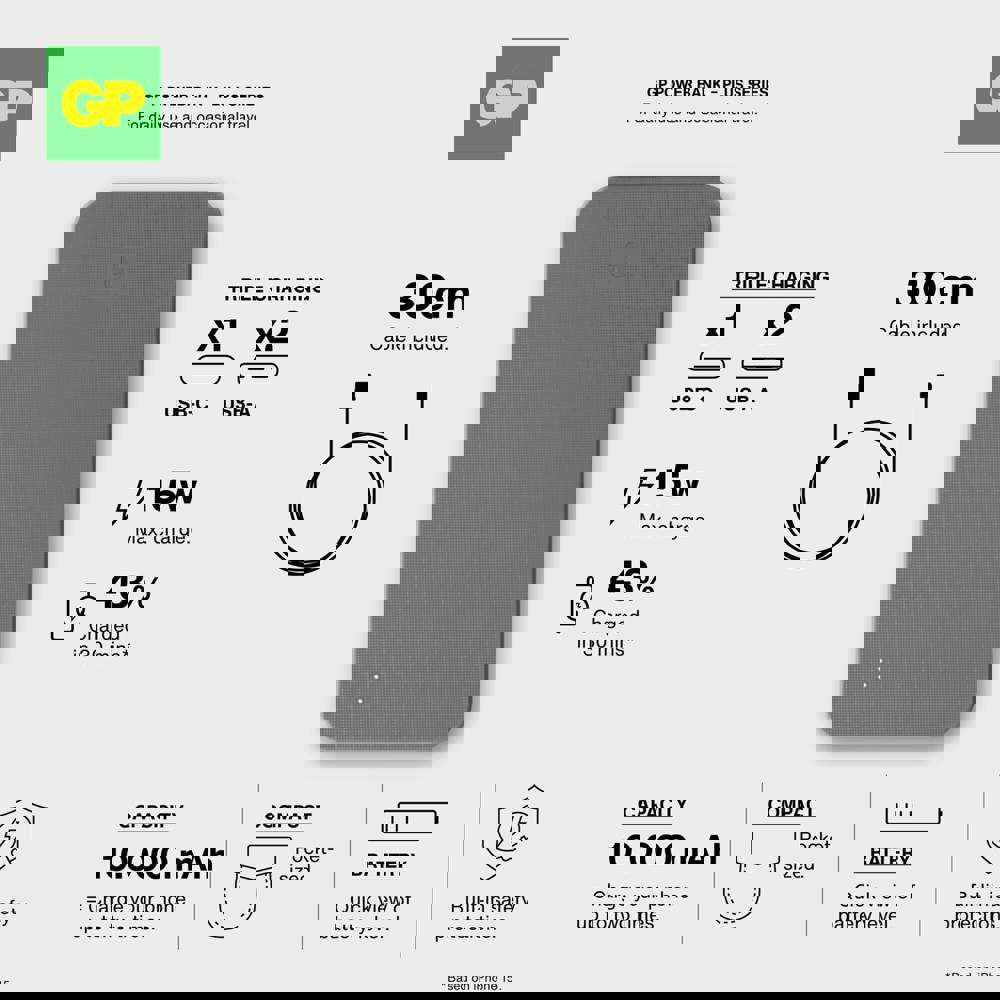 De GP PowerBank combineert betrouwbare stroomvoorziening met een stijlvol design. Met een capaciteit van 10000 mAh kun je drie apparaten gelijktijdig opladen via 2x USB-A en 1x USB-C. De powerbank is uitgerust met een 8-voudige beveiliging voor veilig gebruik en een gegarandeerde lange levensduur. Ideaal voor professioneel en dagelijks gebruik.